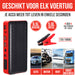- Wordt geleverd in een opbergkoffer met oplaadstekker, auto-adapter, startkabels, 4-in-1 usb-kabel en laptopkabel met 8 verloopstukken