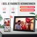 Frameo is een gratis app op je mobiele apparaat (Android / iOS). Met deze app kan je via WiFi overal verbinding maken met jouw digitale fotolijst. Er kunnen meerdere mobiele apparaten aan de fotolijst gekoppeld worden. Zo kan bijvoorbeeld een hele familie of vriendengroep foto's sturen naar een enkele fotolijst. Een leuke en interactieve manier dus om foto's te delen zonder! Foto's worden enkel verstuurd via de app en niet opgeslagen door Frameo. Hierdoor zullen jouw persoonlijke foto's niet zonder toestemming door derden inzichtelijk zijn.