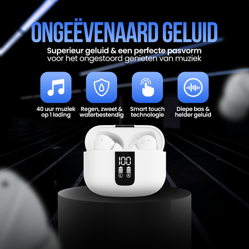 Strex Draadloze Oordopjes - Active Noise Cancelling - LED Display - Draadloze Oortjes Bluetooth - Oortjes Draadloos - Bluetooth 5.3 - Wit